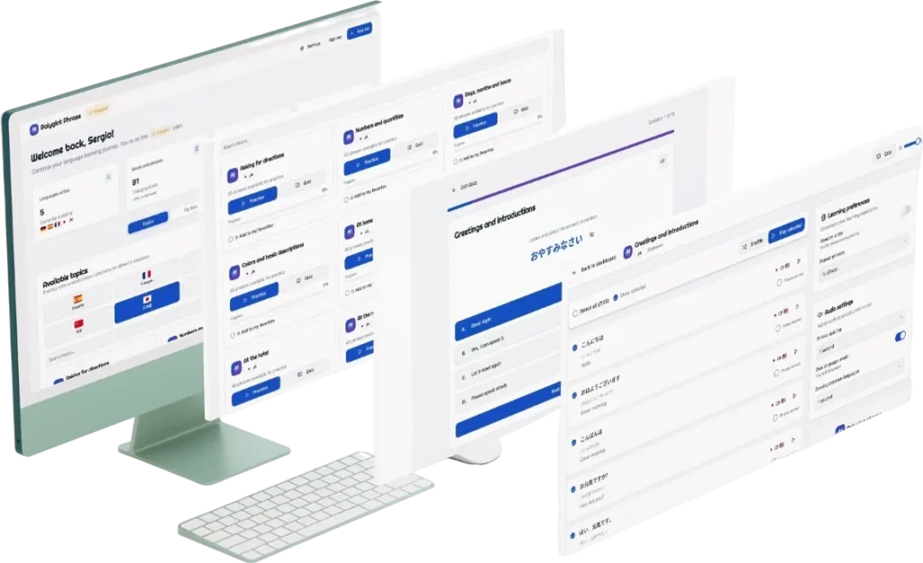 A1 Polyglot Phrase is an interactive platform that helps you learn the most useful expressions in different languages using audio repetition, spaced learning, and progress tracking.